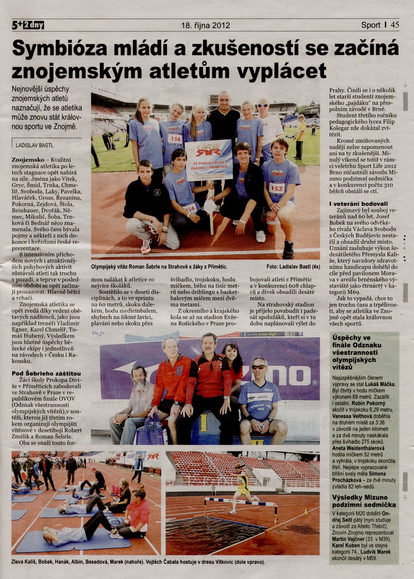 5+2: 2012-10-18 Symbióza mládí a zkušenosti se začíná znojemským atletům vyplácet